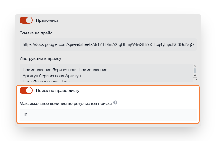 Активируйте опцию и укажите количество строк — тогда для генерации ответа чат-бот будет подгружать в контекст не весь прайс-лист, а только релевантные строки.